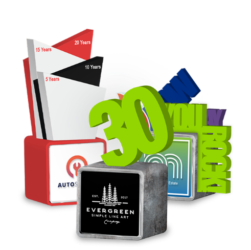 Offering you the options to "design your own" award in our virtual studio, with options anywhere from shape and size, material and color, and any accent to resemble the significance of your award.